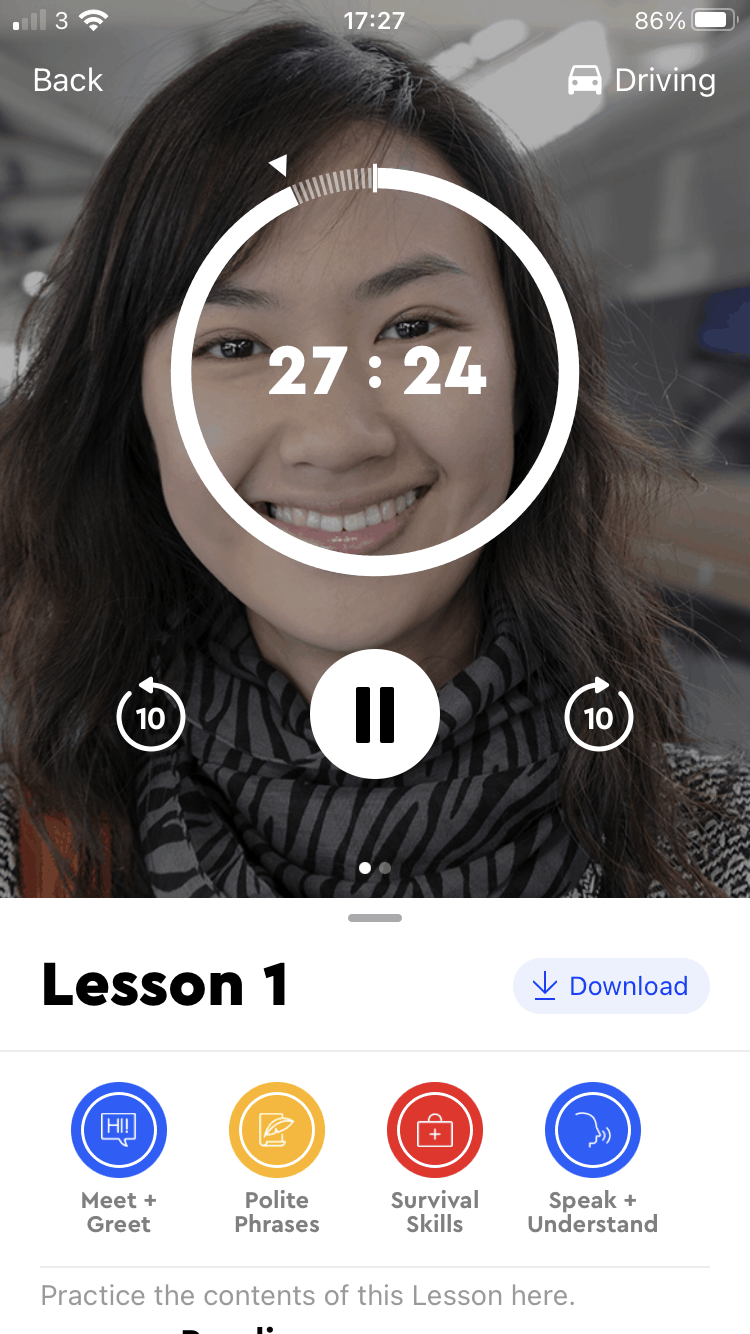 Pimsleur Japanese review app screenshot lesson 1 audio Team Japanese uses affiliate links. That means that if you purchase something through a link on this site, we may earn a commission (at no extra cost to you).